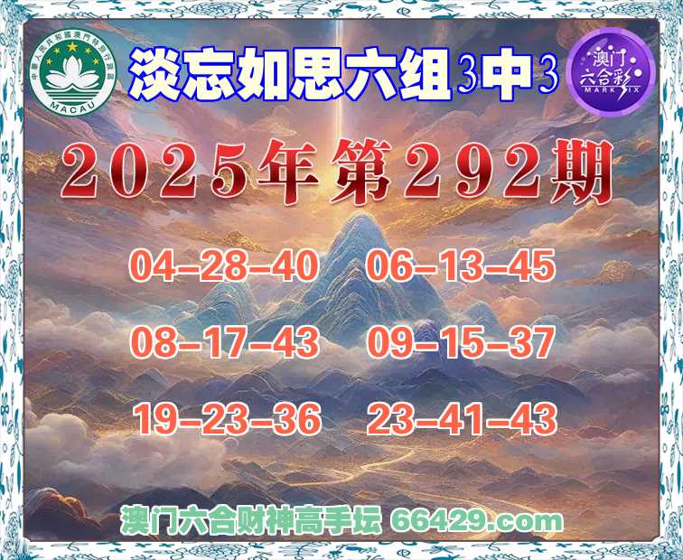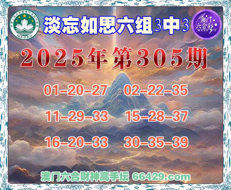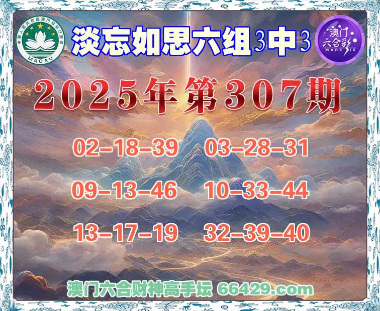 309期:澳门财神【六组3中3】淡忘如思→发表